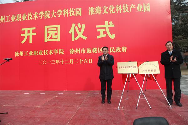徐州市委常委、市委宣传部部长冯其谱与校长祝木伟共同为taptap点点备用入口大学科技园与淮海文化科技产业园揭牌。