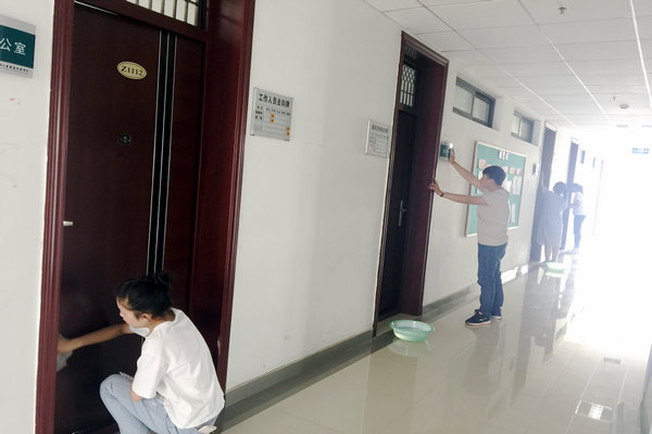 活动当天,同学们衣着整齐,以良好的精神面貌,投入到活动中去。校园中到处都是他们飞舞的身影,只见他们或挥舞着手里的扫帚簸箕,认真的清理着马路上的尘土和死角的垃圾,或手持抹布和水桶,搽拭着教室的门窗和楼梯的扶手。每一个角落因为他们的劳动而变得整洁,每一处区域因为他们的辛劳而变得洁净。他们以自己的行为,无言地传播这环保这一时代的命题。