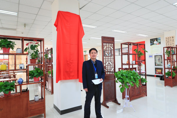 11月22日下午,我校在图书馆四楼红楼梦主题展馆举行红楼梦主题展馆落成暨揭牌仪式,党委书记祝木伟,党委副书记李红,副院长朱作付,江苏乾景检验有限公司总经理、山东德州双泰置业有限公司董事长兼总经理王宗乾出席揭牌仪式,党委宣传部、党委教师工作部、图文中心负责人及相关工作人员参加了揭牌仪式。党委书记祝木伟、王宗乾董事长共同为“红楼梦专题展馆”揭牌。揭牌仪式由慕东周主任主持。