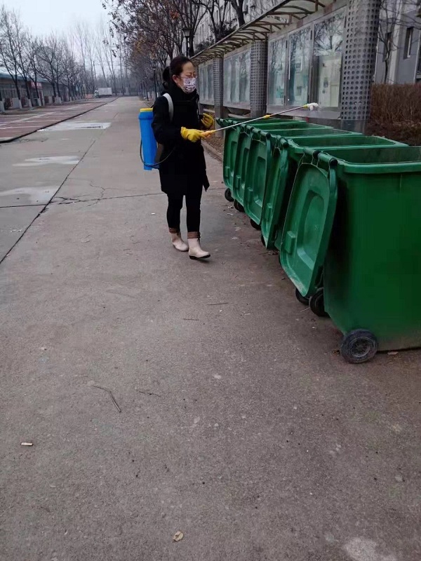 环境消杀是除减少人员聚集之外另一个有效阻击病毒的途径。从1月底,物业人员就开始按照“环境卫生不留死角、清洁消毒不留空白”的工作要求,每日对校园公共区域、卫生间、垃圾收集点、有人值守办公室进行消毒,特别加强对电梯、把手、扶手等重点部位消毒,卫生间配备了杀菌洗手液。