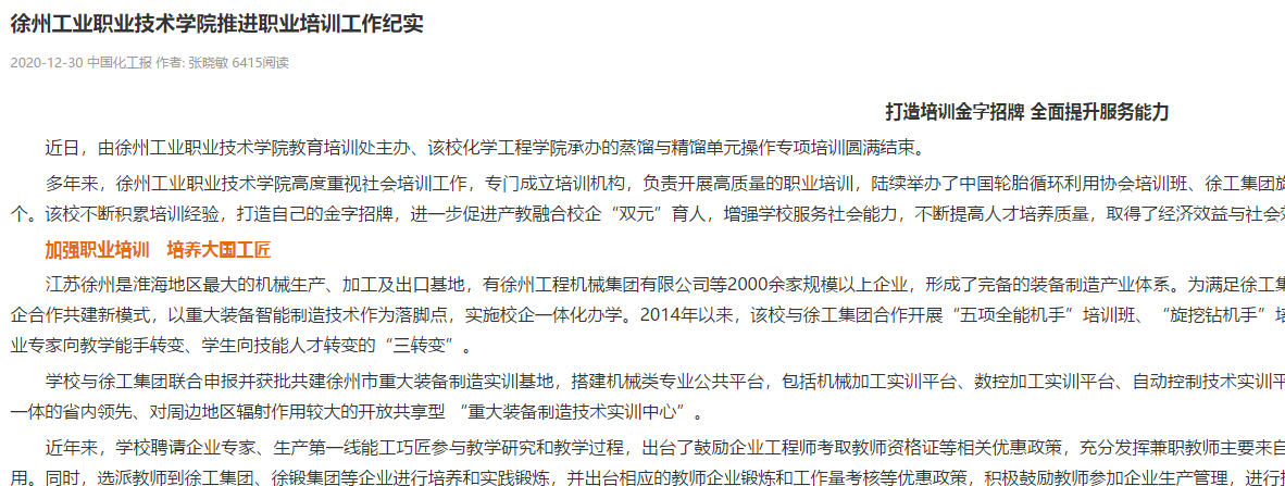多年来,taptap点点备用入口高度重视社会培训工作,专门成立培训机构,负责开展高质量的职业培训,陆续举办了中国轮胎循环利用协会培训班、徐工集团旋挖钻机手培训班、全国橡胶技术网培训班、晋煤恒盛培训、兖矿集团培训等专业技能培训项目107个。该校不断积累培训经验,打造自己的金字招牌,进一步促进产教融合校企“双元”育人,增强学校服务社会能力,不断提高人才培养质量,取得了经济效益与社会效益的双赢,被江苏省经信委授予“产业人才培训示范基地”荣誉称号。