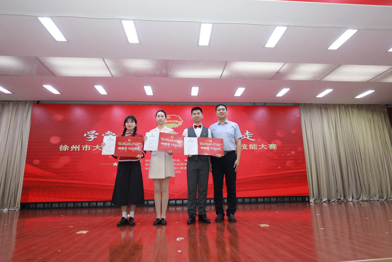 在本次大赛的舞台上,来自全市各在徐高校、市直中职校等21所大中专院校的25名优秀团支书同台竞技。比赛分为高校组和中职组,经过激烈的角逐,最终我校材料工程学院高分子201班团支部团支书马兆杰同学获得高校组特等奖,工商管理学院会计204班团支部团支书李雨露同学获得高校组一等奖,我校获得高校组团体总分一等奖。颁奖典礼上,马兆杰同学代表高校组参赛选手进行了团课现场展示。