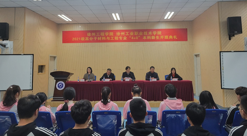 11月9日下午,2021级高分子材料与工程专业“4+0”本科班开班典礼在我校教师发展中心会议中心隆重举行。徐州工程学院教务处处长邵晓根、材料与化学工程学院院长堵锡华和副院长陈艳应邀参加了开班典礼。我校副院长张芳儒出席典礼并讲话,材料工程学院院长王艳秋、副书记周树会、副院长丛后罗、教务处副处长宋帅帅、专业负责人刘琼琼、班主任臧亚南、教学秘书杨昭等老师等相关领导和老师参加了开班典礼。开班典礼由王艳秋院长主持。