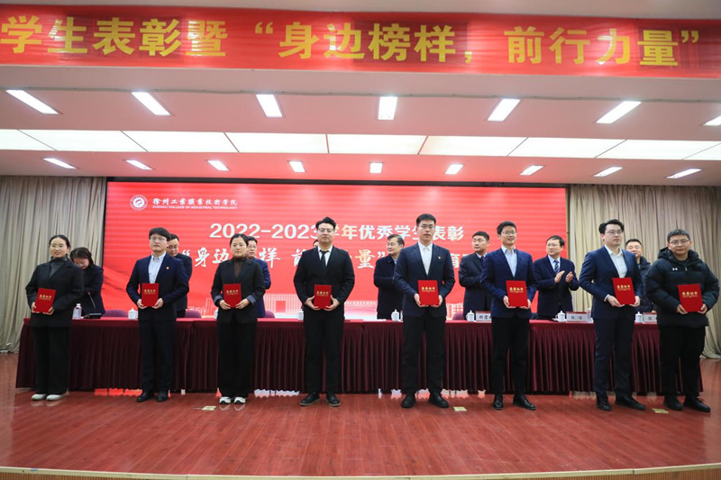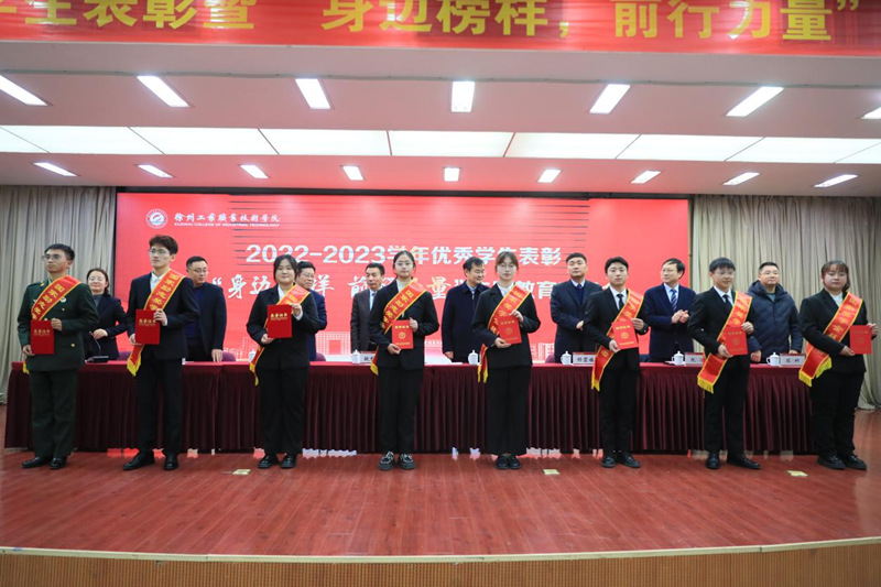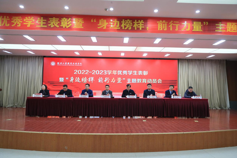 为选树先进典型,发挥榜样引领作用,展示学校“五育并举”学生工作成效,1月3日下午,我校2022-2023学年优秀学生颁奖典礼暨“身边榜样,前行力量”主题教育动员会在图书馆报告厅举行。院长鲍桂楠、副院长张芳儒,相关职能部门负责人、各二级学院党总支书记、副书记、班主任、辅导员代表、获奖学生代表及300余名学生代表参加了表彰大会。大会由学工处处长张妍妍主持。